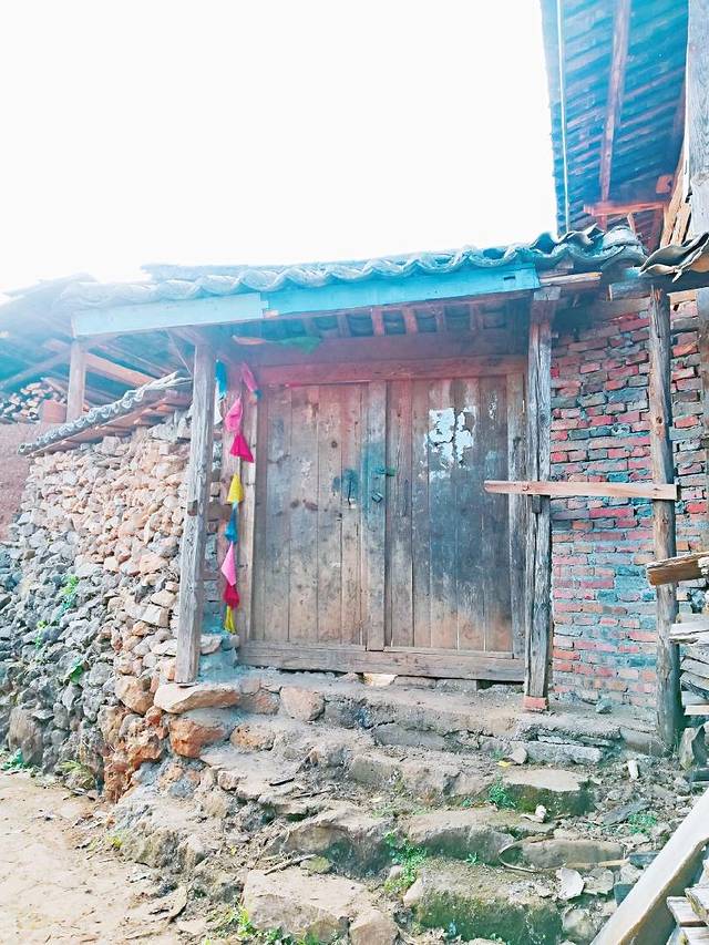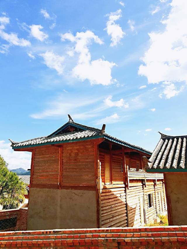樱花等到10点多缓和了,我出门去爬大落水村的日尊寺。村子后面还有一些老的木房子,是真正当地人曾经居住的房子,非常有特色,有岁月沧桑感。也有新建的木房子,一对比就更明显了。据说以前的摩梭人都是住这样的房子,甚至最初连屋顶的瓦片都是木头的。