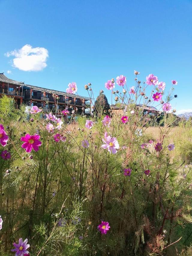 樱花酒店后面草地上格桑花也开得很美。