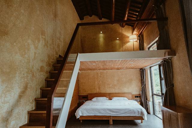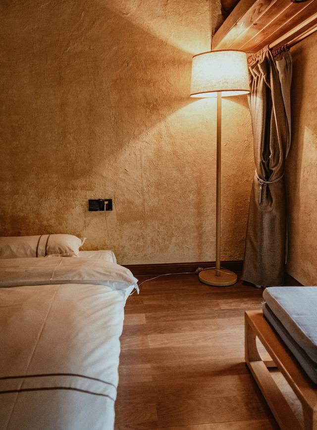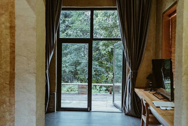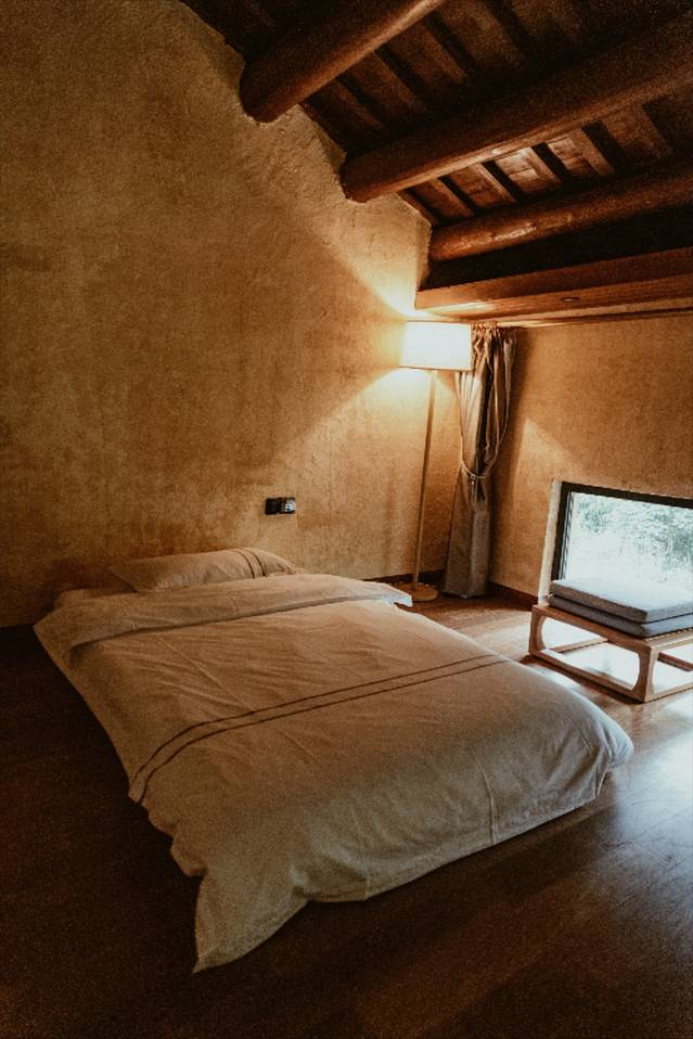 酒店分度假酒店区和民宿区,民宿区是幽静的合院形式,独享一个小森林,三楼层,每个房间都有露台,是留给客人看风景的好配置。