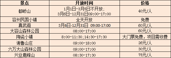景点开放时间和价格(仅供参考,以各景点实际售票信息为准)