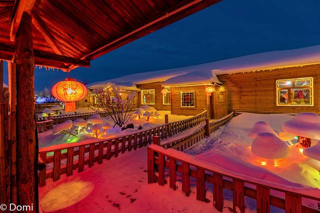 雪乡区占地面积约40000平方米,包含了餐饮、住宿、娱乐等多种业态,建设于2018年,建筑整体采用东北林俗风格,是一个集观光、餐饮、娱乐、购物为一体的休闲度假场所。