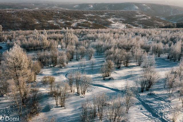 这是第二次见到阿尔山的景色,如童话般的世界,雾凇、雪原、林海……喜欢坐在车上看窗外的风景,高低起伏的路边是一成不变又千变万化的雪景。光影在一个个起伏的雪堆上画下冬的符号!