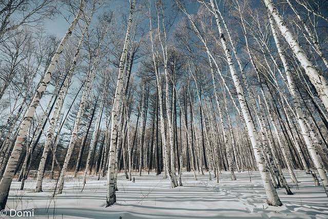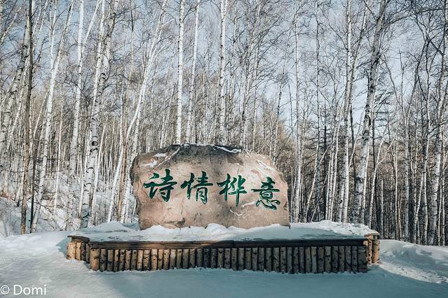 穿过第一个小景点,车子在陡峭的冰雪公路上继续行驶,轮胎压在雪上咯吱咯吱的响,光线穿过两边的白桦打在脸上,也穿透内心,再冷也是值得的。