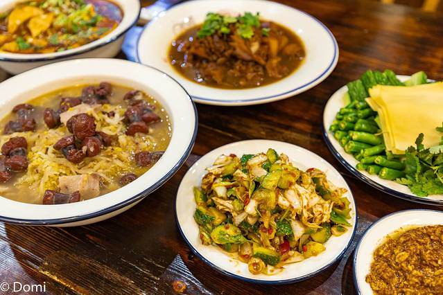 吃完牛骨之后锅底可以下青菜,冻豆腐等;这里的皮冻蘸上配料也可以尝一尝;拍黄瓜花生米里面的花生米吃到停不下来;溜肉段、煎面肠、玉米饼……每一样都好吃。
