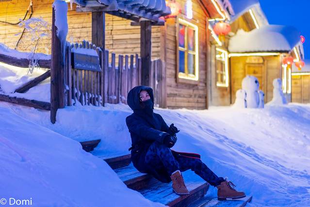 在雪村里走着走着还能看见狗拉爬犁、皇家马车绕城游等项目,木屋旁边的小雪人特别可爱,拍张游客照还是挺适合的。