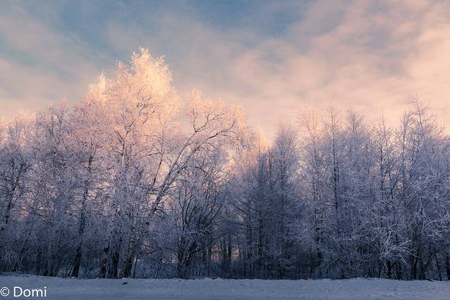 秋天的这里就像一幅美丽的油画,河水,白桦,松树,绚烂多彩。而冬天,叶子落光,河岸冻结,冰雪覆盖了河水、草木,白色与光秃秃的树干成了这的主色调,如梦如幻。