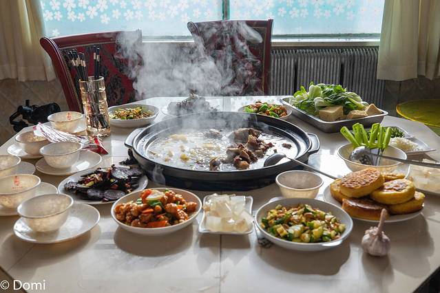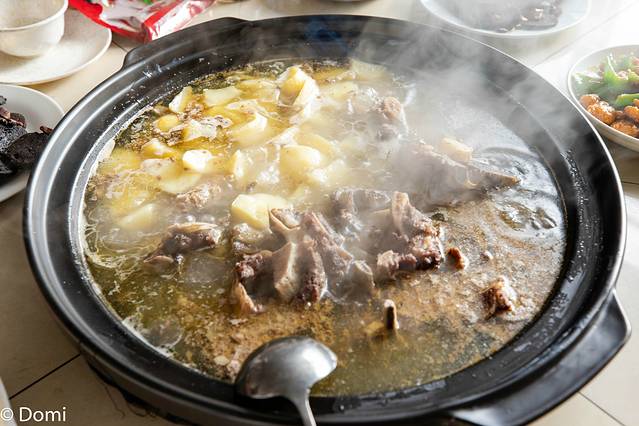 白狼镇里的溢源餐厅是特别好吃的一餐,铁锅炖牛大骨,骨头块儿头比较大,上面的牛骨肉很入味,而且炖的很烂,吃的时候可以直接用刀把肉剔掉,也可以直接啃。