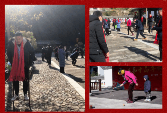 踢毽子、滚铁环、跳大绳、打陀螺等十几种儿时游戏的体验,吸引了游客和村民的兴致,忘记了身份和年龄,纷纷参与体验。