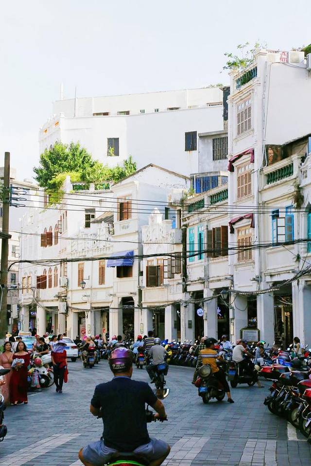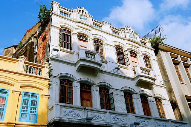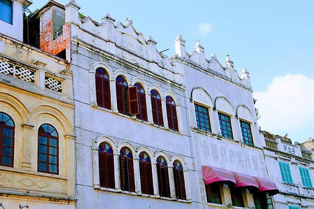 平坦的花岗石板路、欧洲巴洛克风格的女儿墙、古老墙面上细致的雕刻,还有一栋栋骑楼廊廊想接,为行人遮阳避雨。漫步在老街,让人不禁慢下脚步探寻它曾经的故事。