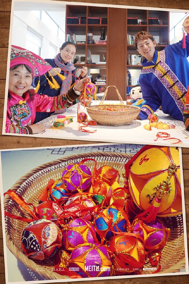 像是穿上传统的壮族服饰,一针一线将八片用钢丝扎了边的布艺做成绣球,或是做一份擂茶。
