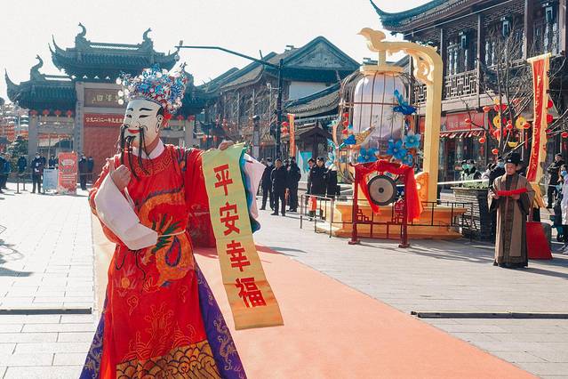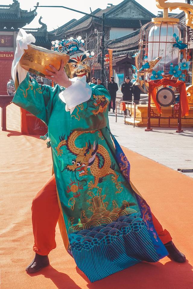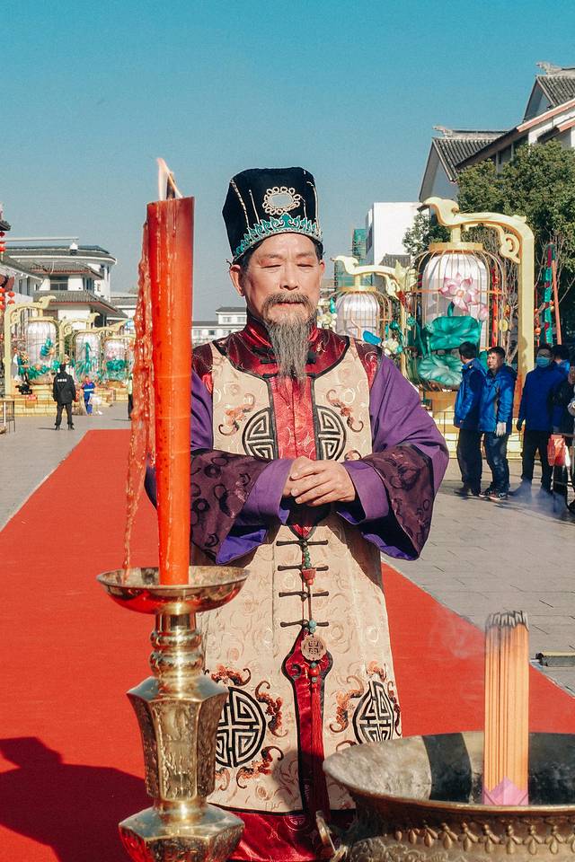 远远的就看到周庄古牌楼前聚集了很多人,在做着开庄仪式的准备。为了庆祝喜开庄,周庄“庄主“携众为周庄点香敬酒来祈福,为2021年祝祷,也为所有的宾客送上问候和祝福,然后带领着大家打开了周庄的大门,整个场面都热闹非凡,红红火火迎接全新的一年。
