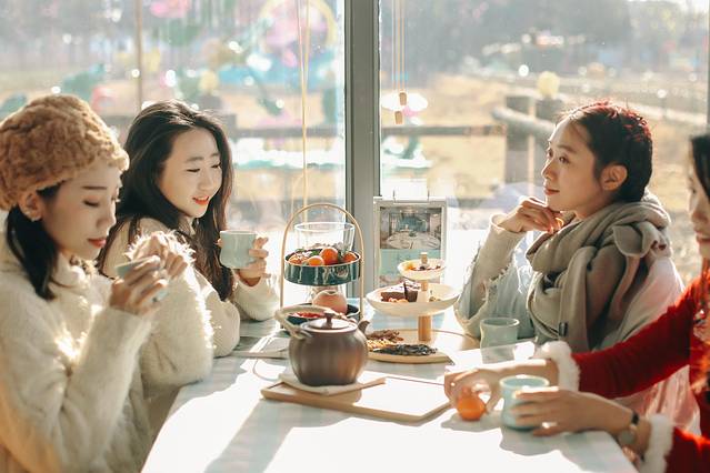 我们找了一家阳光可以倾洒进来的小咖啡馆喝下午茶,新年伊始的这两天,天气格外的好,午后暖洋洋的光线打在桌子上,一壶热茶,几块甜点,一盘新鲜水果,还有几个好姐妹,真的是好惬意的时刻。