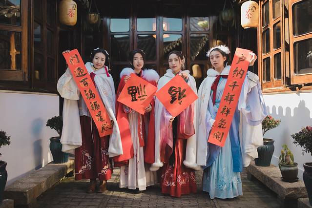 2021年元旦第一天的一大早,是周庄最隆重的开庄仪式,我们也早早爬起来,沐浴着冬日暖阳,来到汉服出租店,是的,没错,我们准备换上特色汉服,去参加开庄仪式。