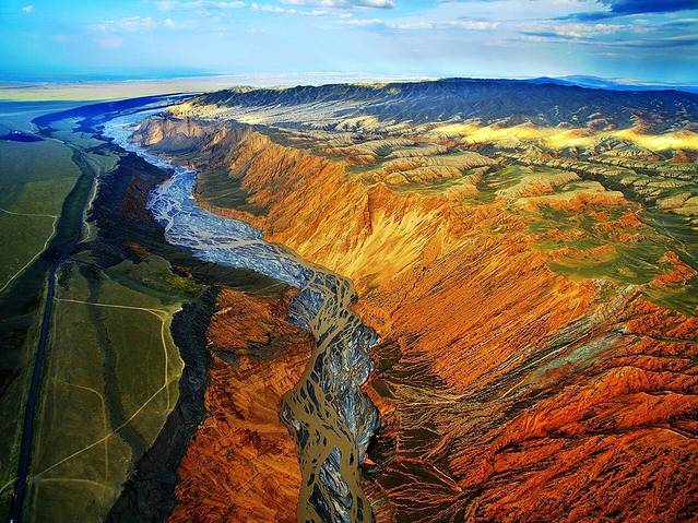 8⃣️一赏丹霞地貌-五彩滩:看绿、紫、黄、白、黑的岩石🧱