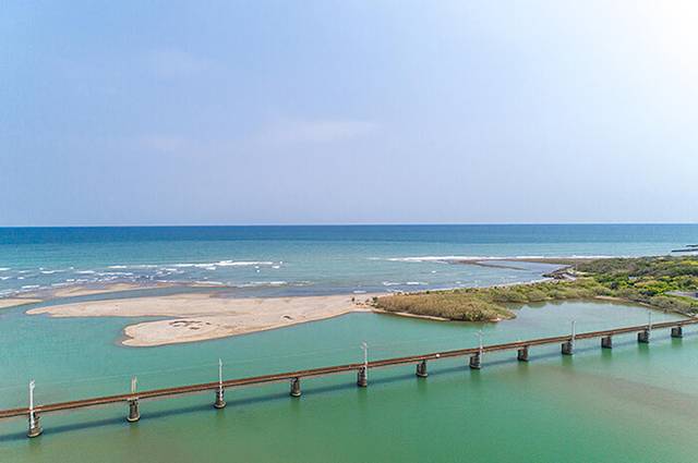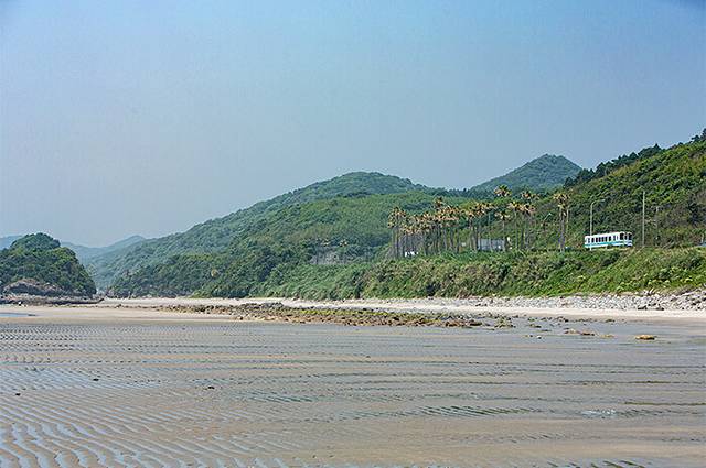 列车行驶在滩涂铁路桥之上,从重冈站驶出后就像进入了动漫《龙猫》中描述的公交站与森林一样,两旁壮观的自然风光令人目不暇接。