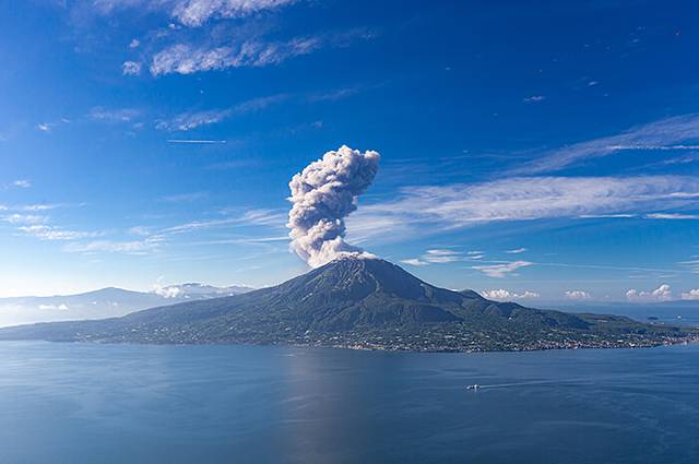 樱岛距离鹿儿岛市区仅仅只有4公里,是一座东西宽近12公里 、南北长10公里 、周长约55公里的活火山岛,有时可以看到火山口的喷雾景象,而飘在樱岛上空的朵朵白云,大多是火山云。