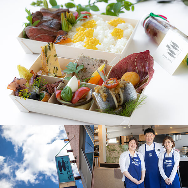 家族餐厅“茶寮 山映” 创立于1933年(昭和8年),经营到现在已经是第三代了。女店主创立了紧追潮流,推出了餐饮新概念。该店一直遵循“餐食”、“酒”和“服务”三位一体的理念。女店主在继承这一理念的同时,进一步发挥了食材和当地特产真鲷鱼松的组合味道,创新地开发出鲷鱼松便当。