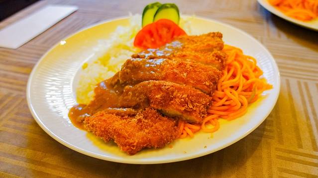 《东洋日出新闻》的旧址,如今已成为一座名为“鹤茶庵”的西餐馆。炸猪排、意面和咖喱别有创意的混搭,成就了长崎的灵魂美食——土耳其饭。