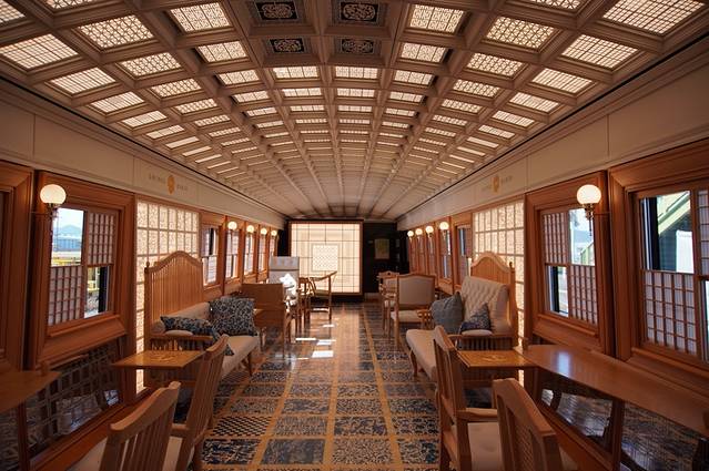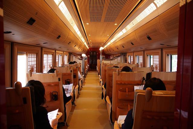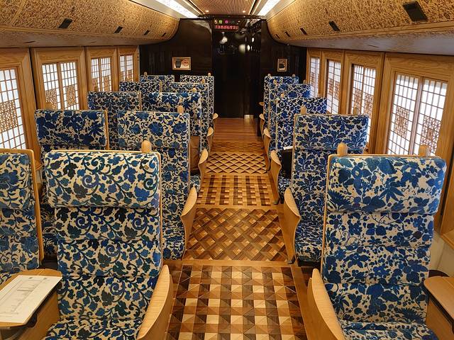该车厢采用日式设计,座椅宽松舒适,车窗硕大明亮,乘客可悠闲地饱览窗外风光。