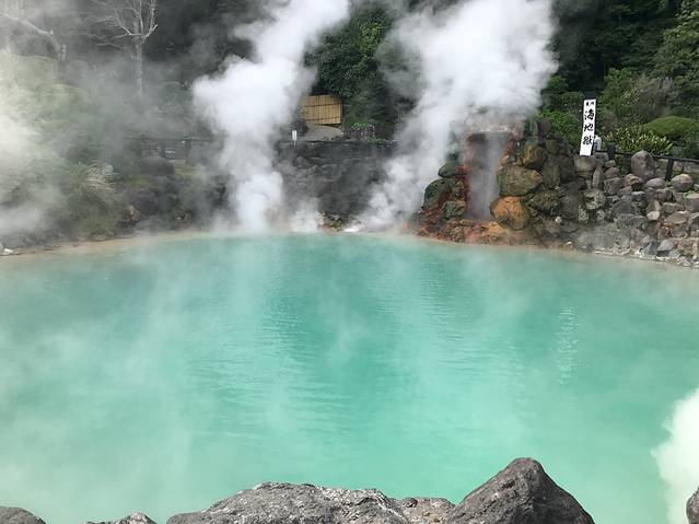 海地狱是清新的蔚蓝色大池子,看起来像海,但不断升腾的蒸汽让人直觉不可轻易靠近。位于别府地狱之首。