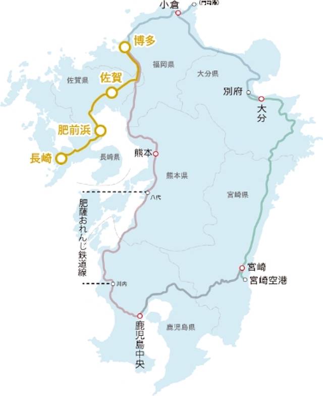 驶离博多站,列车下一站目的地是长崎本线,中途乘客将在车上享用午餐。中途还会在肥前滨站停留较长时间。该地历史悠久,云集了众多日本酒酿酒厂。在有明海的陪伴下,列车继续向长崎开去。在“36+3”线路中仅有长崎至博多段在晚餐时段运行。