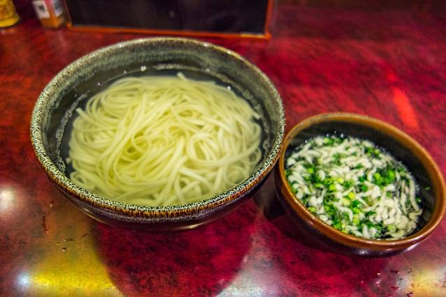 面条煮熟后捞起,倒入高汤,制成特色乌冬。乌冬面一般面条较粗,而宫崎乌冬以面细柔嫩著称,入喉顺滑,口味独特。