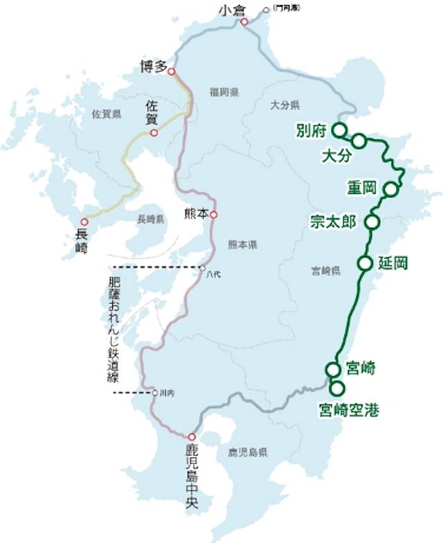 列车从宫崎市驶出,在日向滩美景的陪伴下,一路向延冈进发。延冈站也有当地特产出售。延冈的下一站是有秘境之称的宗太郎站。而到了重冈站,会有佐伯市的人贩卖当地特色商品。