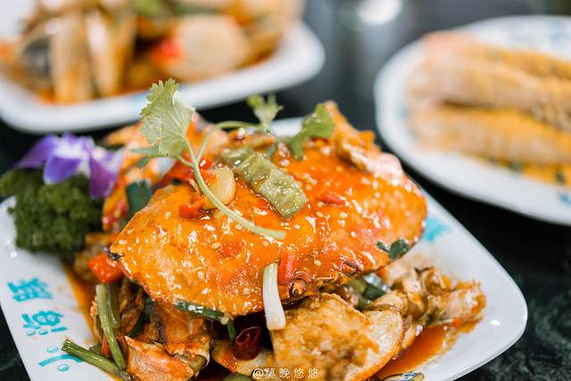 珍宝蟹一只炒起来就一大盘了,我们选择用辣椒炒的做法,吃起来香辣之中还带有一点点鲜甜,非常符合我们的口味,而且里面的蟹肉超级多,越吃越兴奋,嘻嘻。