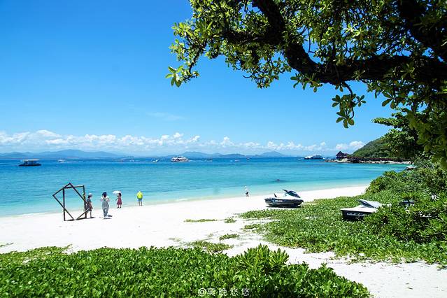 随后我们继续往左边方向游览,这边是一大片细白的沙滩,上面还有生长着不知名的热带植物,这样看着好像置身于国外某个海岛一般。