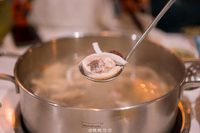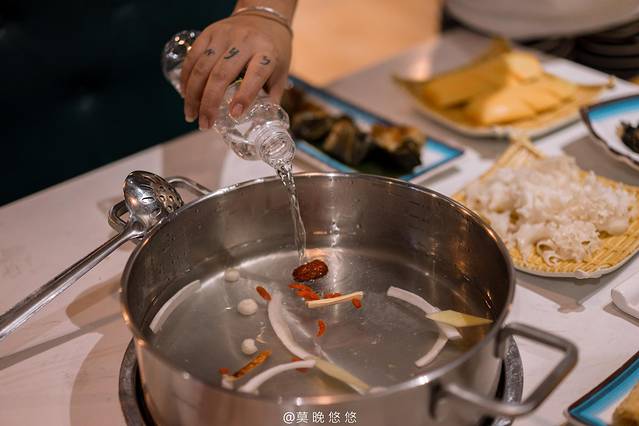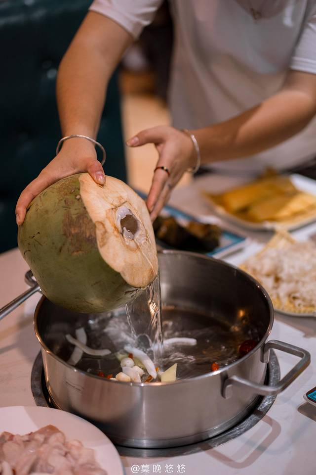 这个过程服务员都会在我们眼前操作,真材实料完全可以放心,汤底倒入之后还可以加入一些珍珠马蹄、海底椰皇、枸杞,红枣等配料一起煮。