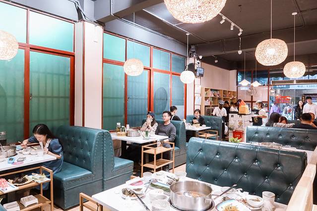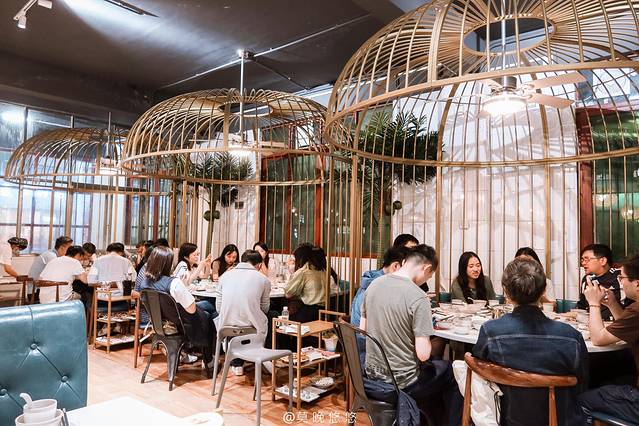 店里的装修风格也挺简约大方的,人多的话可以坐大桌,还有别致的鸟笼设计雅座,金属的鸟笼可以把桌跟桌之间分隔开来,又具有观赏性。其他位置就都是卡座了,每个座位之间也有隔离设计,然后沙发坐起来十分舒适。