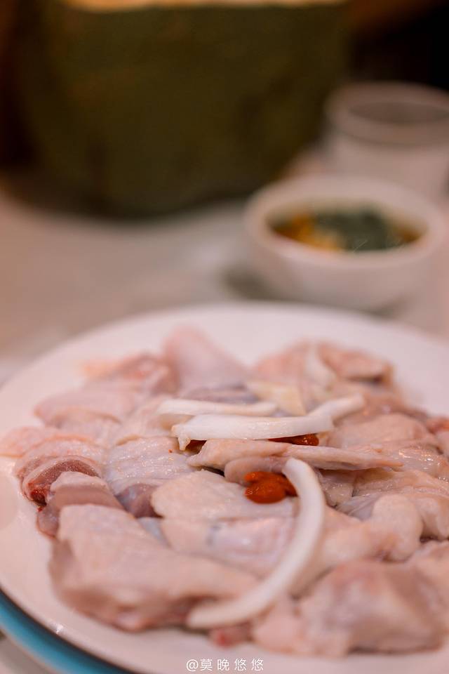 而椰子鸡的另一个主角就是鸡肉了啦。店里的鸡都是来自文昌散养的走地鸡,每一只都养了有150天以上,最为特别是这些鸡都养在椰林之中,所以从小就吃椰子长大的鸡,它们的肉质吃起来还有淡淡的椰香味呢。