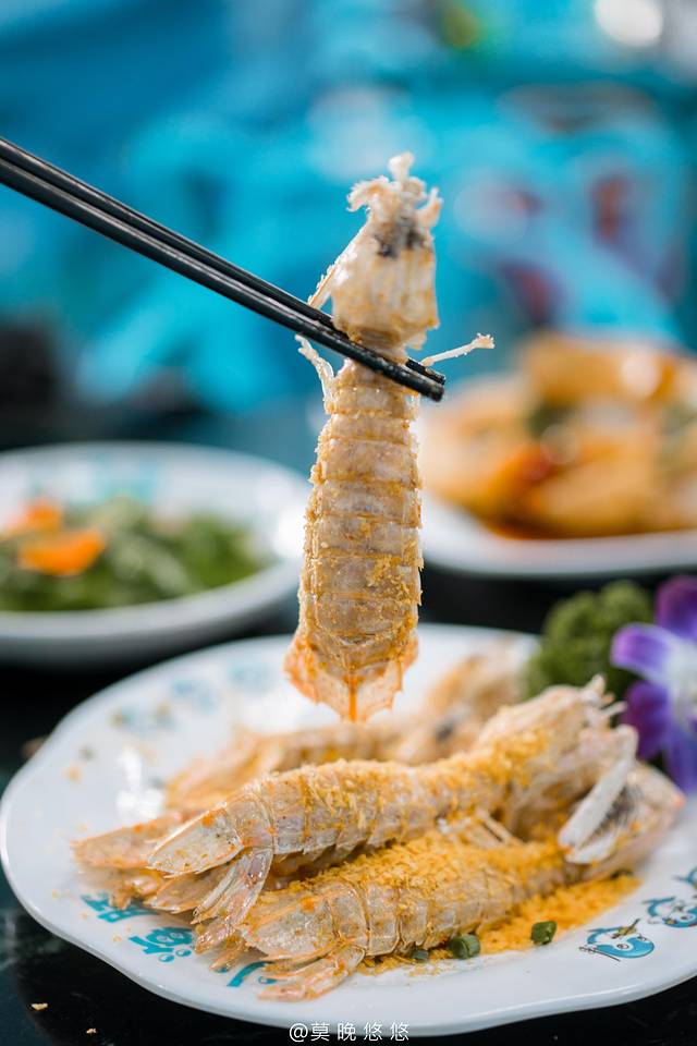 皮皮虾最好吃的做法当然就是椒盐啦,香香脆脆的外壳非常好剥开,里面的虾肉超级鲜甜紧实,皮皮虾的个头十足,所以里面的肉也是很厚实,吃起来无比满足呀。
