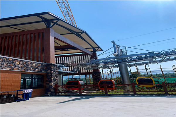 那么赶快跟着我的文章坐上缆车进入风景如画的云上草原,愉快地欣赏这个世外桃源般的景色吧!迅速跳上这特有的四连轴的缆车上山啦。群山环绕,从地面嗖一下就到了中间段。因为四车厢一起上升的速度比日常单个分开的真的快上好几倍的速度。所以倒也没有了能让你慢慢紧张的心理。一下子就到顶啦。另外这四连体的缆车还有一个特别之处,就是坐在里面其它车厢内在谈话,有大部份我们居然是可以互相听到的。好不热闹!