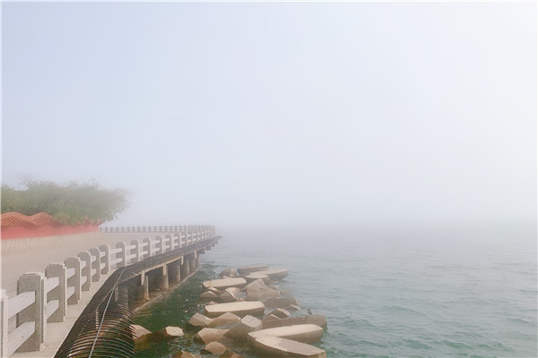 进入以后才知道,大门处的虚幻缥缈是整个景区都有的景色。即使包围着景区的海面,也是一番云雾缭绕。而那些在头顶上方欢快地叫着,不停地盘旋着的海鸥,应该也是这一方风景区最独特的风景线之一了。大自然的独特,总是可以我们的生灵匹配到最合适的地方。让它与大自然合为一体,创造出更多生动的壮观的景象。而我们人类有幸可以用自己的双眼和智慧,看到世界的奇妙与美!
