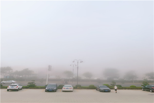 第二天一早起床,走到一楼用餐时无意间看到酒店门口的雾茫茫,被这大雾的实足惊艳了到。没到八仙过海景区,就已经被如此强大的仙气大大的包围。雾气轻轻吹在脸上,这种凉凉的似有似无的感觉是一种非常舒服的感受。几米以外的事物我们不走近看几乎是看不清的。想着这里已经如此美了,那八仙过海景区那方位,应该更仙气十足吧!回过神赶紧去了餐厅,把早餐美美地解决好就出发去目的地啦。