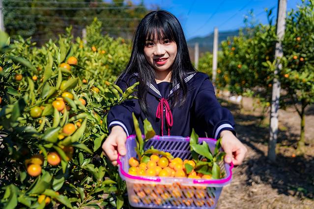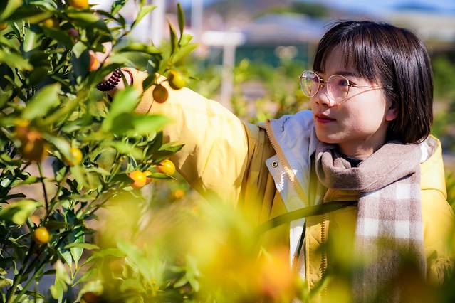 现在这个时间是金桔丰收的季节,一株株果树上长满了金黄诱人的金桔,这里的金桔有两个品种,一个是脆皮金桔,一个是糖心金桔,两个的味道相近但是口感不同,个人比较喜欢糖心的,咬一口嘴里甜如蜜。