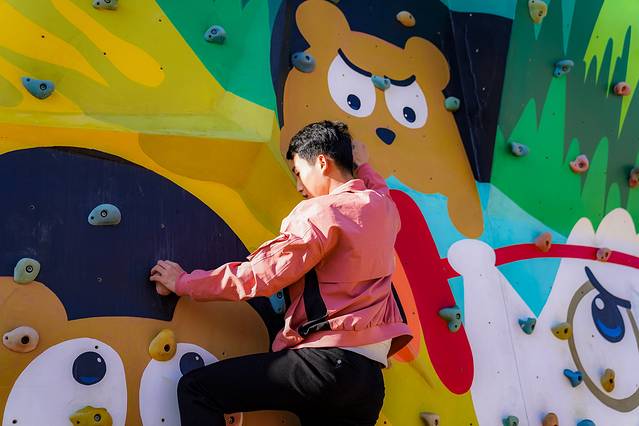 周末假期在攀岩小镇可以填满一天的快乐时光,攀岩项目以前接触的并不多,在这里有各种等级难度的练习攀岩区域,无论你是初学者还是经验丰富的老手,都可以找到自己展示训练的场地。