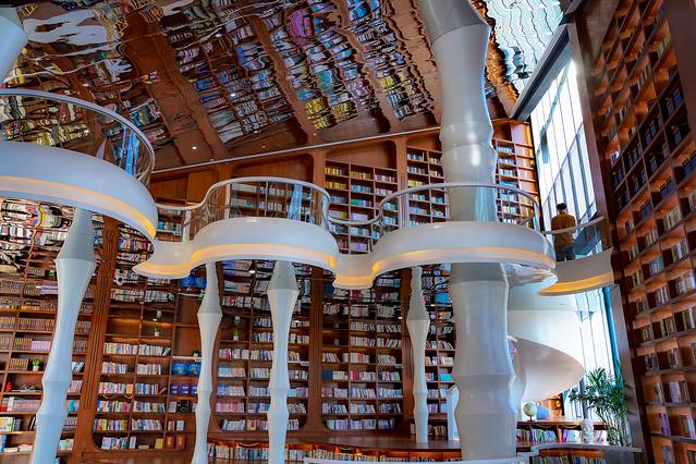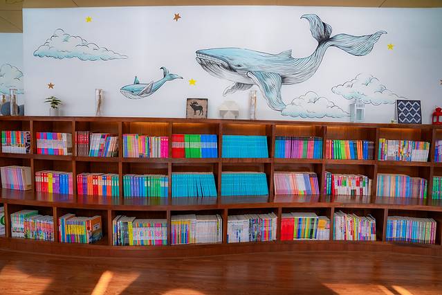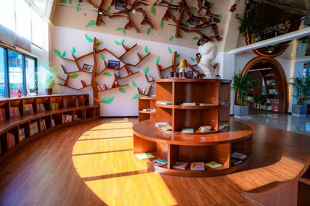 走进书吧心里蹦出来的第一句就是:“这里也太美了吧”,文学、历史、红色文化、风景、故事、语言、青少年、儿童等等各种各样的书籍,静静的摆满了各个阅读区域,既丰富美观,又简洁易寻。