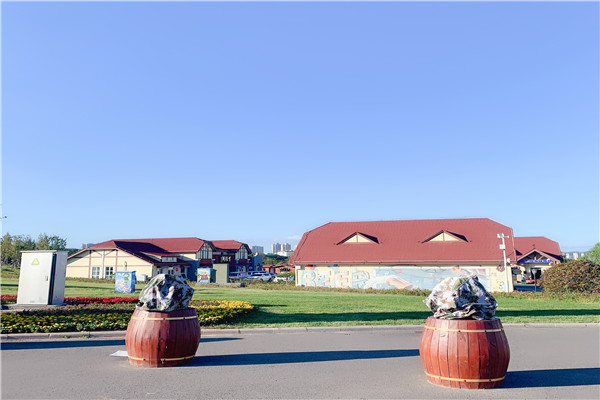 金沙滩通往希尔顿酒店的中间段区域。就是有着异域风异的青岛世界,这里有着很多的酒吧与美食。晚上出来时还会有各种各样的美食(包括烧烤)和美酒。我们当时去刚好碰到青岛啤酒节即将开幕。现场的工作人员都在紧锣密鼓地布置场地。二边的建筑与绿化建设真的别有一番风味。啤酒节与啤酒文化的特色,体现在道路二旁的任何一个角度。入口处青岛世界的欢迎大门,也是按手握啤酒的姿势而建的。