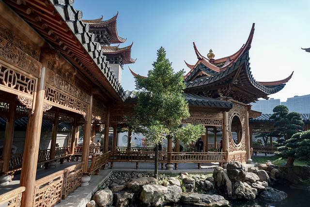 这里太有古风的韵味,走在里面,总是被生机勃勃的盆栽和精雕细琢的“艺术”着迷,一幅古典园林的画卷,亭台、飞檐、回廊、雕窗、池水、游鱼、老松、曲径,感受诗情画意的艺术境界。