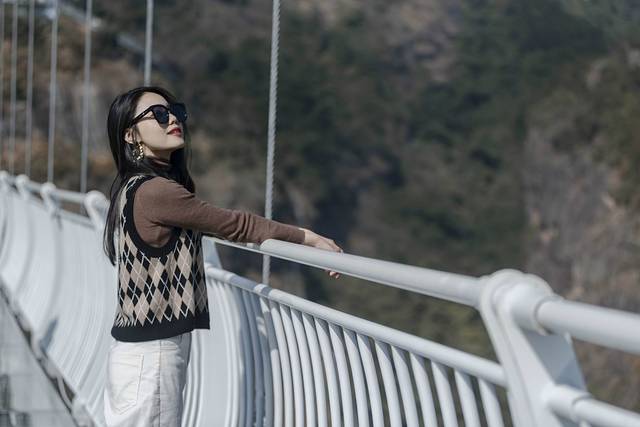 都峤山的风景还是很美的,山水很震撼,除了我最喜欢的草坪和周边的古式建筑和亭阁做为背景,还有惊心动魄的玻璃吊桥,全长三百多米,也是够刺激,一样是好看的打卡点。