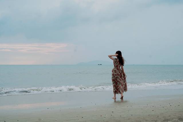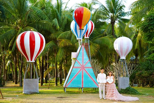 这次来三亚,我选择住在三亚湾。这里即有城市的生活便利条件,又有美丽的自然风光。可谓进退皆宜。三亚湾湾长沙细,沙滩平缓,海面开阔,岸上椰林连着绿地,一条滨海大道沿着椰林、大海和沙滩绵延至远方。无论是开车还是骑行,都要走一走这条美丽的观光大道。在椰梦长廊的中段,有一段旅拍胜地,各种凹造型的道具分散在滨海大道的外侧。这里也是看海上日落的最佳选择地。