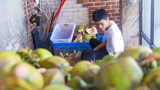 正在砍椰子的小哥哥。