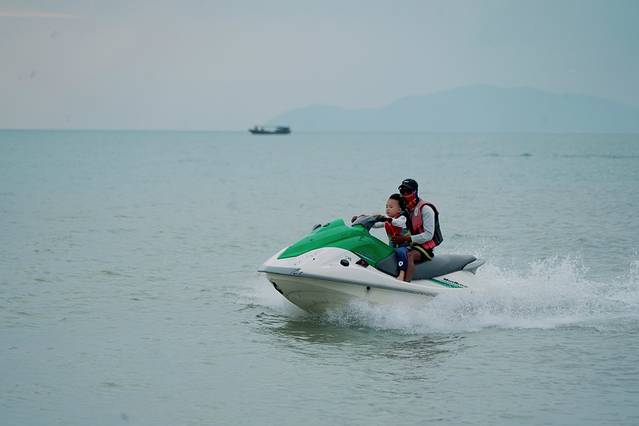 靠近市区一段,也就是海月广场那段比较繁华,岸上有很多健身的群众,每到傍晚非常热闹。海边有很多游玩儿的游客,。中段部分有很多婚纱摄影的恋人,年轻人拍写真的也很多。