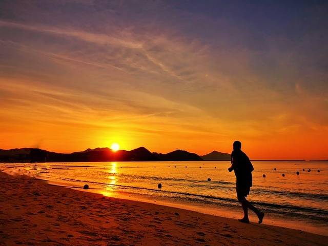 严格来讲, 大东海 看见的日出是从山头上升起的,不是海上日出。因为 大东海 是海岸线的西端,整个三亚 市区出了 亚龙湾 往 海棠湾 、 陵水 方向才可以看到海上日出。不过在这里抓拍 朝阳 下的剪影也是很棒的。
