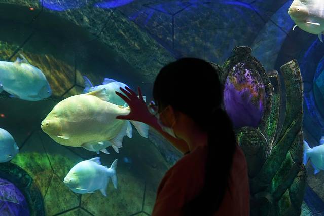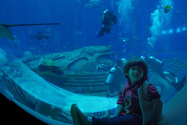 漫步于“失落的空间”水族馆,探寻在海底隐藏了千年的亚特兰蒂斯文明,池水在灯光的映射下呈现出奇幻多变的颜色,86000尾海洋生物在这里游弋,囊括了逾270种淡水和海水动物,包括鲨鱼、鳐鱼、水虎鱼、海鳗、魅影鳐鱼、和巨骨舌鱼等。