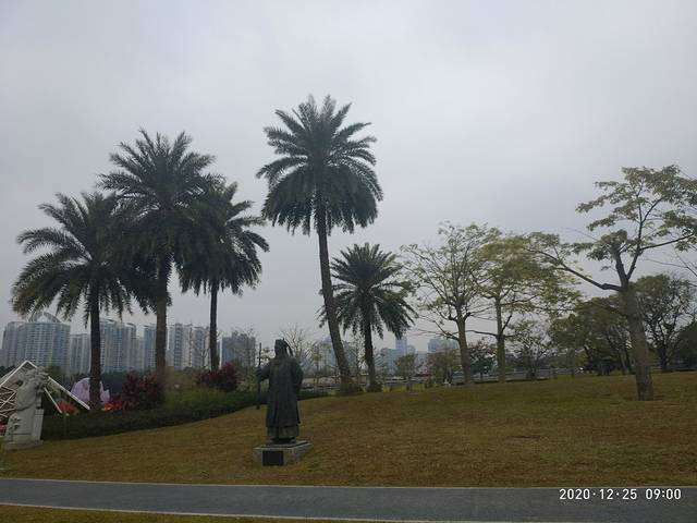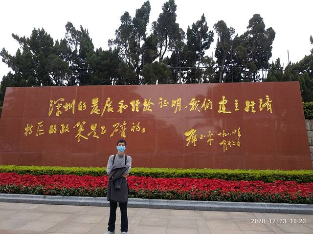 改革开放离不开邓先生的英明决策与高瞻远瞩,而莲花山公园则是证明这一切的地方,远眺深圳,高楼大厦拔地而起,从一个小渔村演变成今天的局面,是何等的眼界。从住处乘公交到莲花山公园侧门----莲花村。从一条小路上去,满坡都是绿色,踏着绿色前行,安静,和谐,湖边,亭子,阶梯,树木,生活就是如此,重复与重复。走过一片树林,绕过一潭湖水,沿着路径朝山顶去也,岔路很多但目的就是一条,游人不多,目标是一致的,身体以微微发热,猛跑几步上得山顶,来到平台,缓过一面,威武的英容,慈祥的样子,望着小渔村的未来,充满希望,充满期待,您的愿望实现了。看着城市奇特的高楼,异形的建筑,竞相展露头角,邓先生是开怀大笑。从小路上来从大路返回,从侧门走向正门,却是另一番景象,湖变的灵性,花变的鲜艳,人也惭惭多了,我也变不清方向了。经打听才知,你已偏离路线,怪不得风景这边堵好,来到正门也,钟灵水秀,追逐羊城。