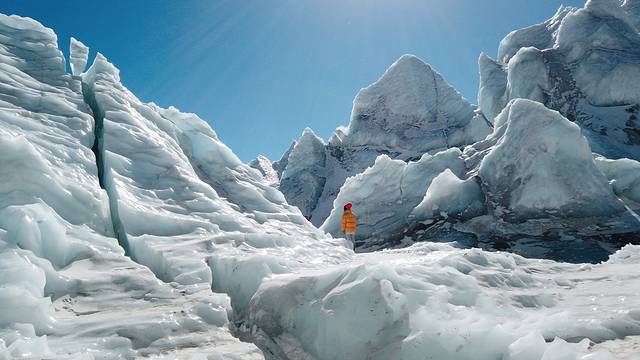 随着海拔越来越高,但在你疲惫不堪时,世界就像一个幕布,突然打开了,此刻美景突然涌现在眼前,在阳光的照射下,放眼远眺,神奇的冰川,震撼人心,那么耀人眼目