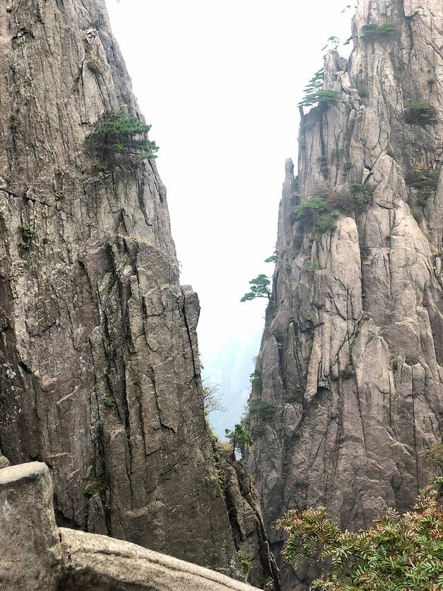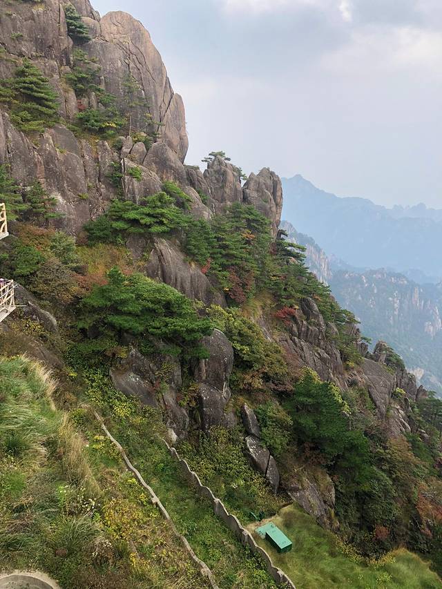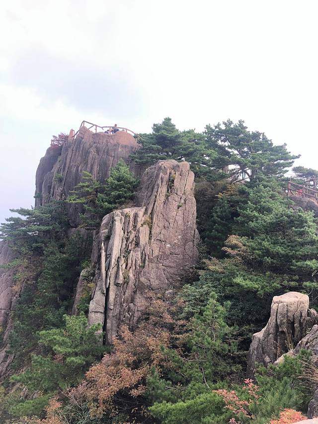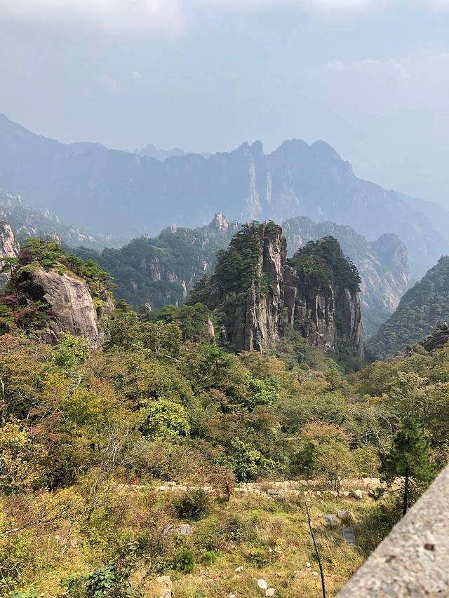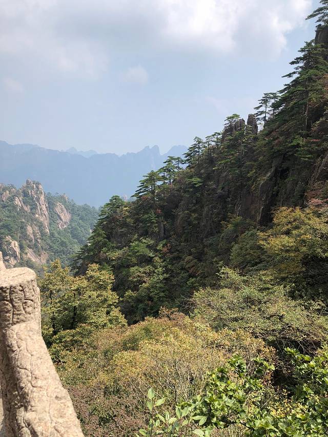 黄山小时候来过一次,只记得很美,但只是走马观花。这次好好地走了一次,真心好美,倚在山顶的扶栏上,看着山间的绿树红叶黄叶怪石苍松碧水,忘记了近日的烦忧,要是能永远待在这青山绿水间真是太幸福了。